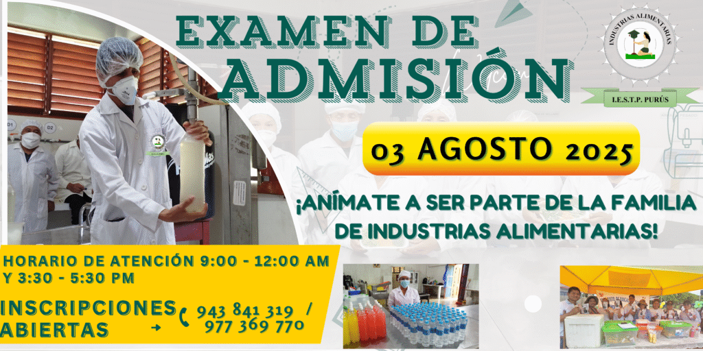 El Instituto de Educación Superior Tecnológico Público Purús informa que hoy, viernes 7 de marzo de 2025, se está llevando a cabo el Examen de Admisión Ordinario para la carrera técnica de Industrias Alimentarias. La institución extiende sus mejores deseos y augurios de éxito a todos los postulantes que aspiran a formar parte de nuestra […]